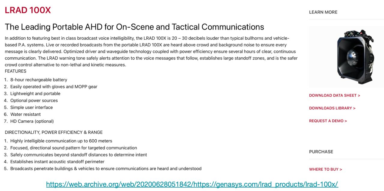 The DC police force finally attempts adequate warnings in accordance with the First Amendment Assemblies Act (DC protest clearing law), and uses the LRAD for this final escalation of force, but the one speaker was inaudible mere feet away due to the crowd noise and size, and therefore inadequate.